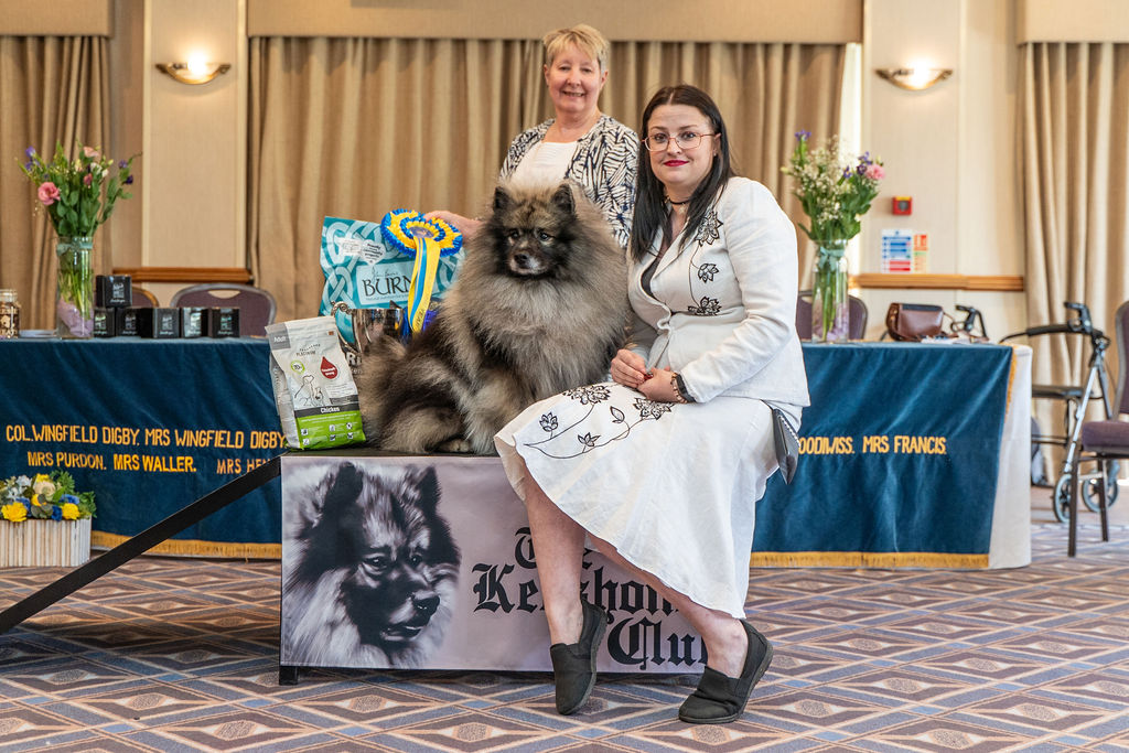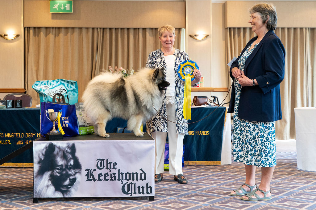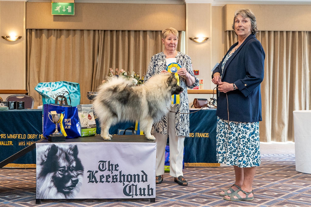 Stunning young bitch, right for size, cobby body, round bone and neat cat feet, Such a lovely eye shape band expression, good pencilling, balanced in skull and muzzle. She is so well made in front with a good deep lengthy rib, strong loin and high set tail. She is such a beauty, has such excellent breed type , so sound and impressive in full coat, all shades of grey.